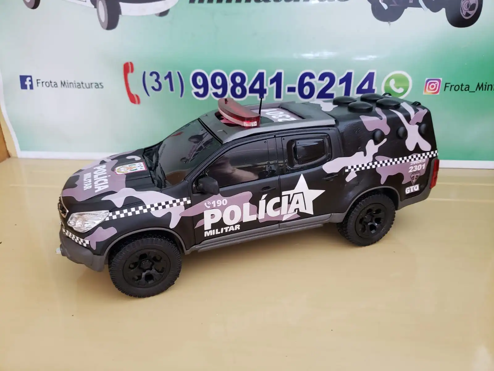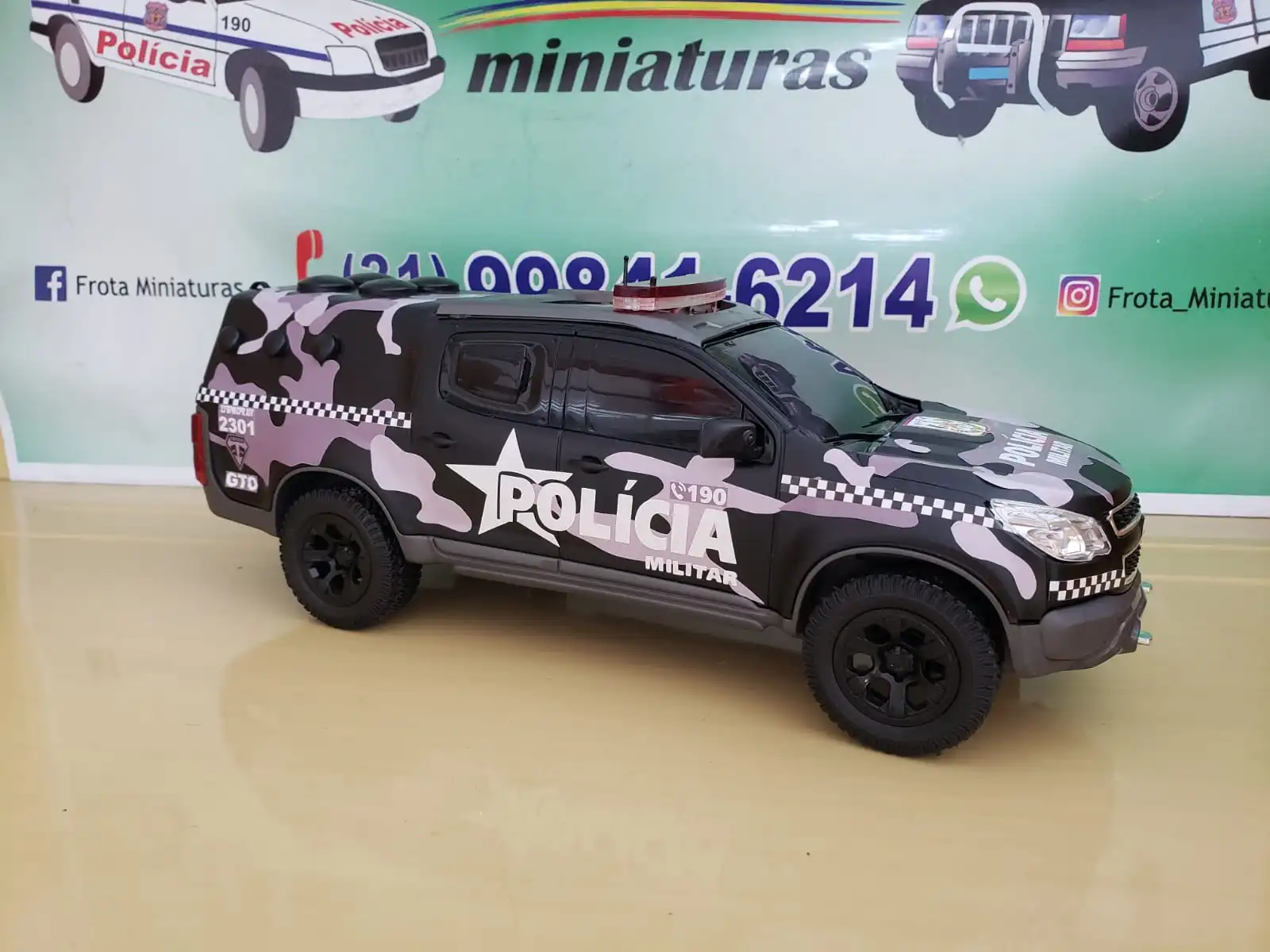 - a) Personalizamos, sem custo, com Prefixo da Viatura, Batalhão, Placa e Nome no para-brisa. Após a compra, gentileza nos enviar uma mensagem via WhatsApp informando os dados a serem acrescentados na miniatura. Caso não informe, os dados serão personalizados aleatoriamente.