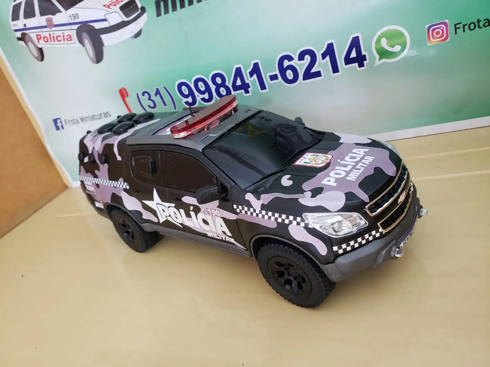 - b) Caso queira essa miniatura com os acessórios opcionais (sirene, giroflex, strobo, farol, lanterna, quebra mato e estribo, base de madeira e plaquinha de homenagem), nos chame no WhatsApp que enviaremos a informações necessárias.